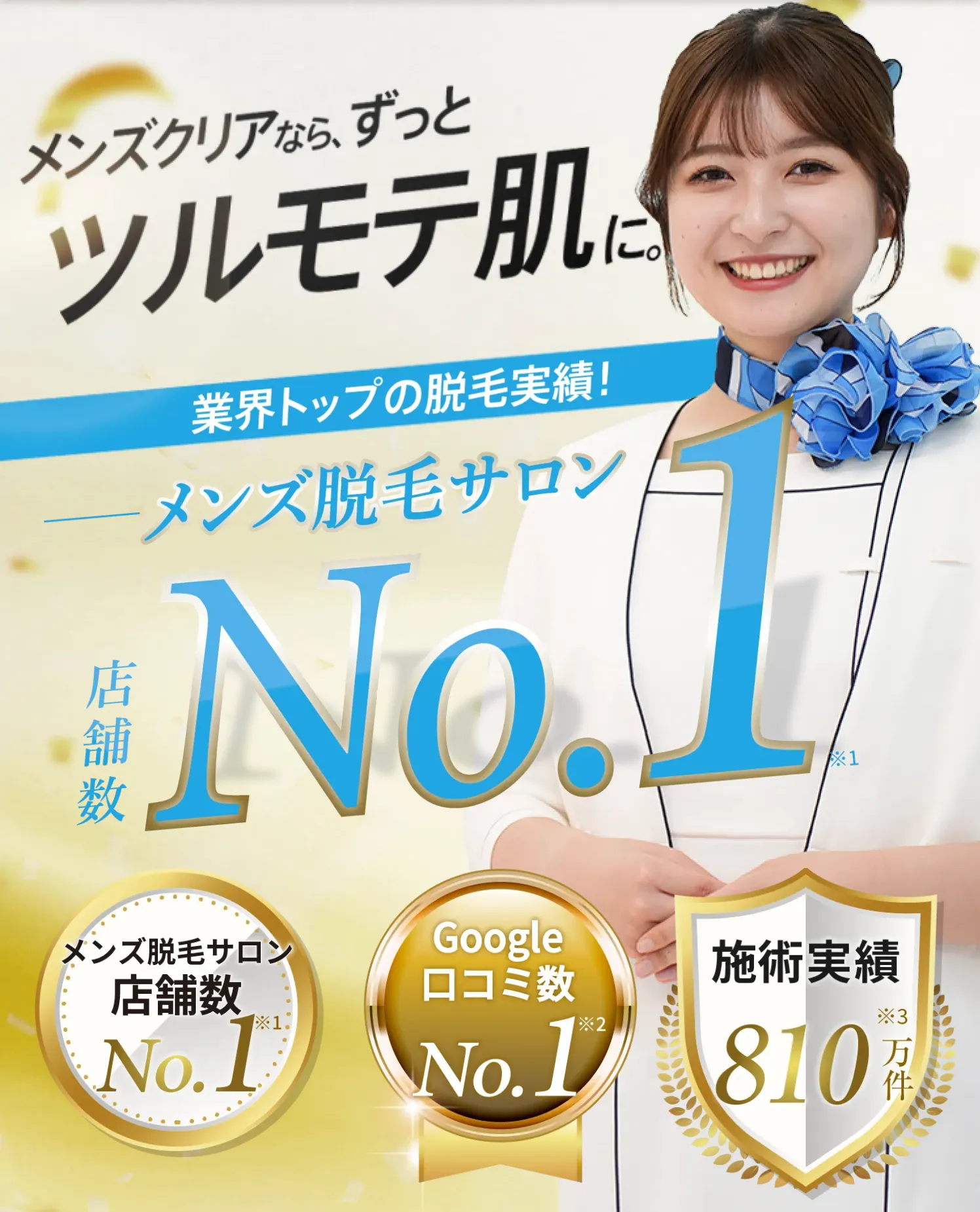 • ※2 調査年月:2025年10月 調査対象:メンズ脱毛サロン大手3社 調査方法:大手脱毛サロン3社(メンズクリア、リンクス、RBL)につき、公式HPに記載された各店舗のGoogleレビューの口コミ総取得数を比較